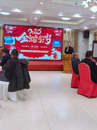 公司总经理尹智勇先生首先致新春贺词。他说,紧张忙碌的2024 年已经过去,公司在各级领导班子的带领下,在全体员工的不懈努力下,取得了前所未有的销售成绩。新年的一年,面临着新的机遇和挑战,希望全体同仁再接再厉,圆满完成公司 2024 年各项目标。最后预祝大家合家欢乐,身体健康,万事如意。