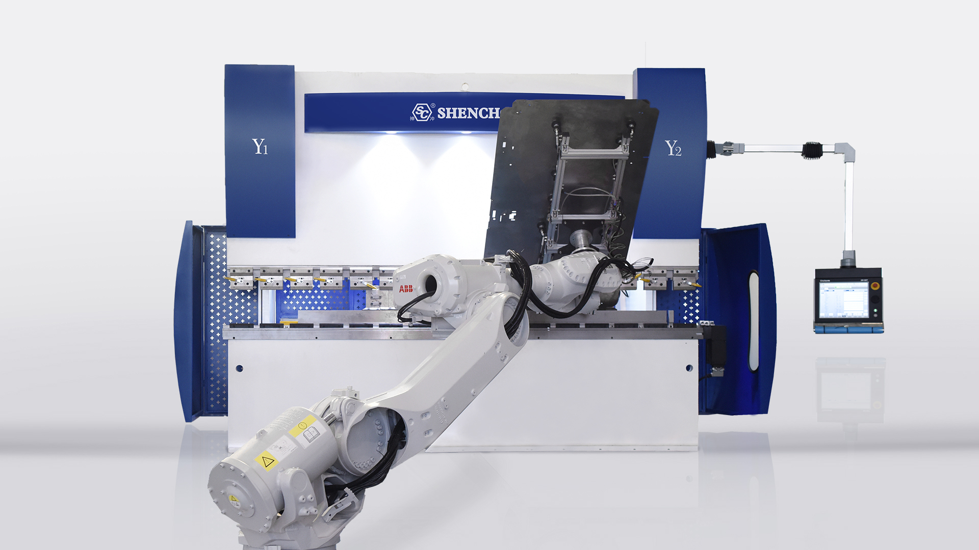近年来,钣金板材加工领域,自动化加工技术的应用逐渐普及。钣金加工自动化的核心技术在于板材折弯的自动化。尤其大尺寸重量较大零件的加工,工人的劳动强度大,通常需要多名操作工人完成,劳动力度大,工作环境恶劣。所以折弯机器人逐渐的出现并且取代了人工折弯。